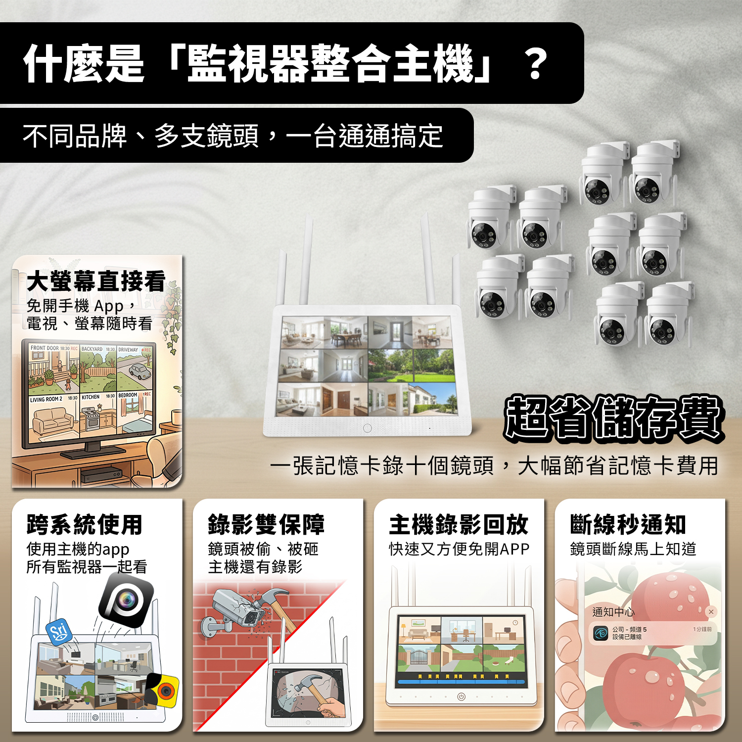 📡 可連10個鏡頭: 一次最多可以接10顆鏡頭,可直連與Onvif混搭。