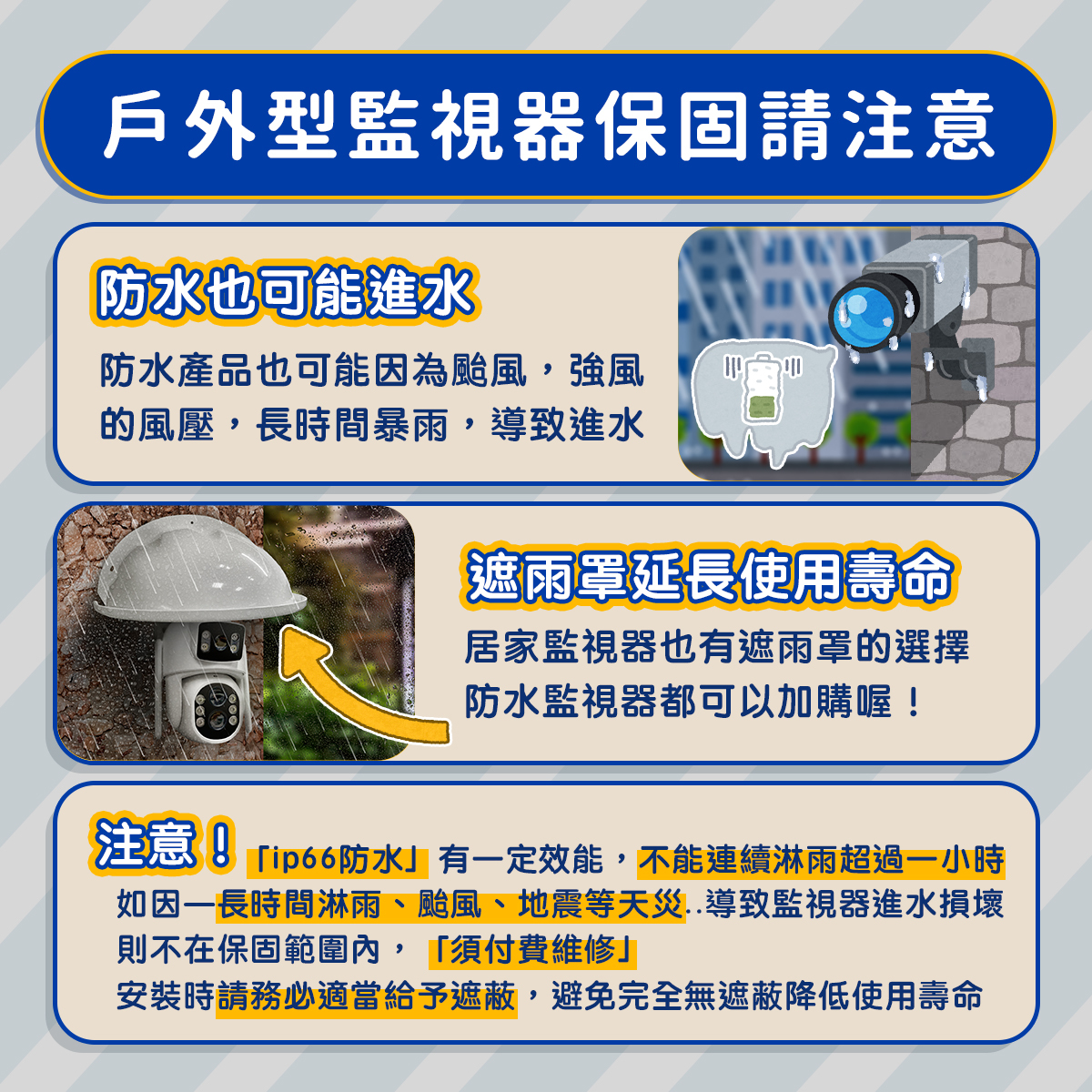 建議加購並安裝專用防水罩,可有效延長設備使用壽命。